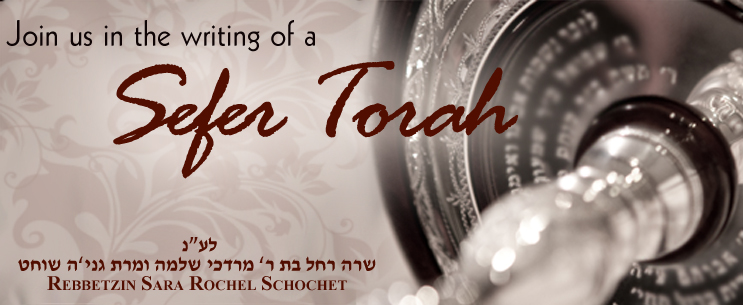 We thank you for your participation in the writing of Rebbetzin Sara Rochel's Sefer Torah. May her soul be an everlasting, eternal source of comfort and strength for all of us.